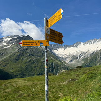 We headed to the right up towards Bergseehütte but then took a left turn to head down to the lake. Once reaching the end of the lake, we went up the valley until the trail went towards Chelenalphütte. We stopped on a large rock, ate lunch, and enjoyed the view before making our way back. The entire hiking trail was stunning from start to finish. The wildflowers and alpine roses were never-ending. I even found a calm area in the glacier river for a little cold plunge! It was a perfect day! We ended it with a beer back at the Göscheneralp Restaurant, where we connected to the Wi-Fi and let our family know where we were.