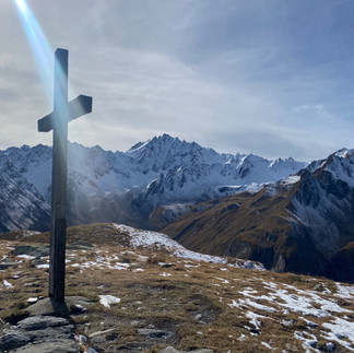 While waiting for the boys to roll out of their sleeping bags, I snagged coffee from the local joint, and we kicked off the day under the Glacier de L’A Neuve. A casual game of volleyball set the vibe before we headed towards Le Lacs de Fenêtre. Late fall meant a sprinkle of snow and some slippery spots, but with the right kicks, it was an adventure worth every step. The views, both on the way up and at the lake, were breathtaking. Lunch was a chill affair under a cross, soaking in the lake view and the mountains across the valley.